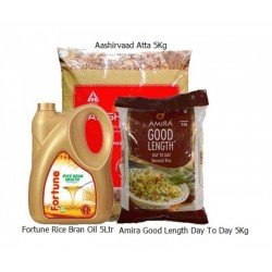 fortune rice bran oil 5ltr aashirvaad atta 5kg amira guru daily basmati rice 5kg
